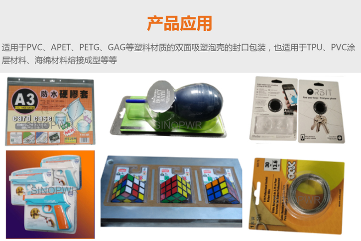 產(chǎn)品應用: 常用于醫(yī)療透析紙與吸塑包裝,pvc、PETG雙面吸塑泡殼封口包裝,吸塑吊卡封口包裝,雙面紙卡夾吸塑罩熱合封口包裝,吸塑包裝。