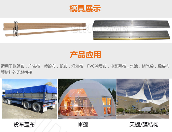 適用于防火圍油欄、水體圍隔軟簾、固體浮子式PVC圍油欄、快速布放圍油欄、岸灘圍油欄等各種圍油欄進(jìn)行無縫拼接;也可用于建筑膜結(jié)構(gòu)、張拉膜、戶外膜結(jié)構(gòu)、戶外遮陽布、廣告噴繪布、PVC涂層布、快速卷簾門材料焊接。